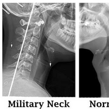 목뼈는 옆에서 보았을 때 C자 형태로 정상적인 커브를 나타내고 있어야 하는데 일자 형태의 수직으로 변형된 상태를 일자목 또는 거북목이라고 합니다.
