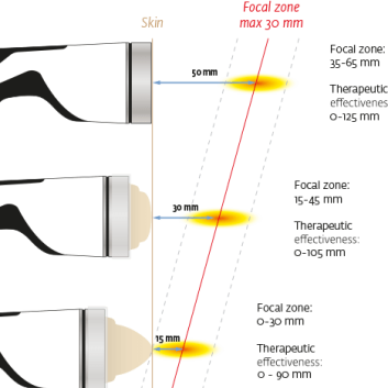 충격파 치료에는 두 가지 형태가 있습니다. 충격파가 전달 되는 부분으로 부터 퍼져나가는 방사형과 통증 부위 내부의 병변에 집중적으로 충격파가 전달 되는 집중형 입니다. 각각의 용도가 있다고 할 수 있겠지만 일반적으로는 집중형이 조금 더 편안하고 효과적으로 치료 된다고 할 수 있습니다.
